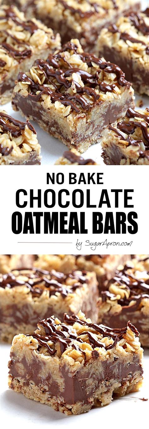 No Bake Chocolate Oatmeal Bars Sugar Apron / No-Bake Cookie Recipes Perfect For Summer : In a large mixing bowl, mash the butter, white sugar, and brown sugar together until smooth and creamy, and beat in the eggs to make a creamy mixture. Oatmeal, almond butter, chocolate + sea salt cookies 3 eggs1 cup of brown sugar1 cup of white sugar1 teaspoon of vanilla extract1 teaspoon of white corn syrup2 teaspoons of baking soda1 stick of butter, melted1.5 cups of raw unsalted almond butter4.5 cu Blender chocolate mousse cleo's recipes. She'll teach you how to make them too.; Gradually beat in the flour mixture, rolled oats, and 1 1/2 cup of butterscotch chips. Federal government websites always use a.gov or.mil domain.